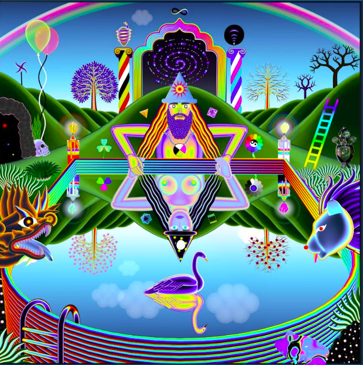 Known for his visionary artwork that blends themes of nature, spirituality, and metaphysical concepts, his work spans a variety of mediums, including painting, music, and animation.